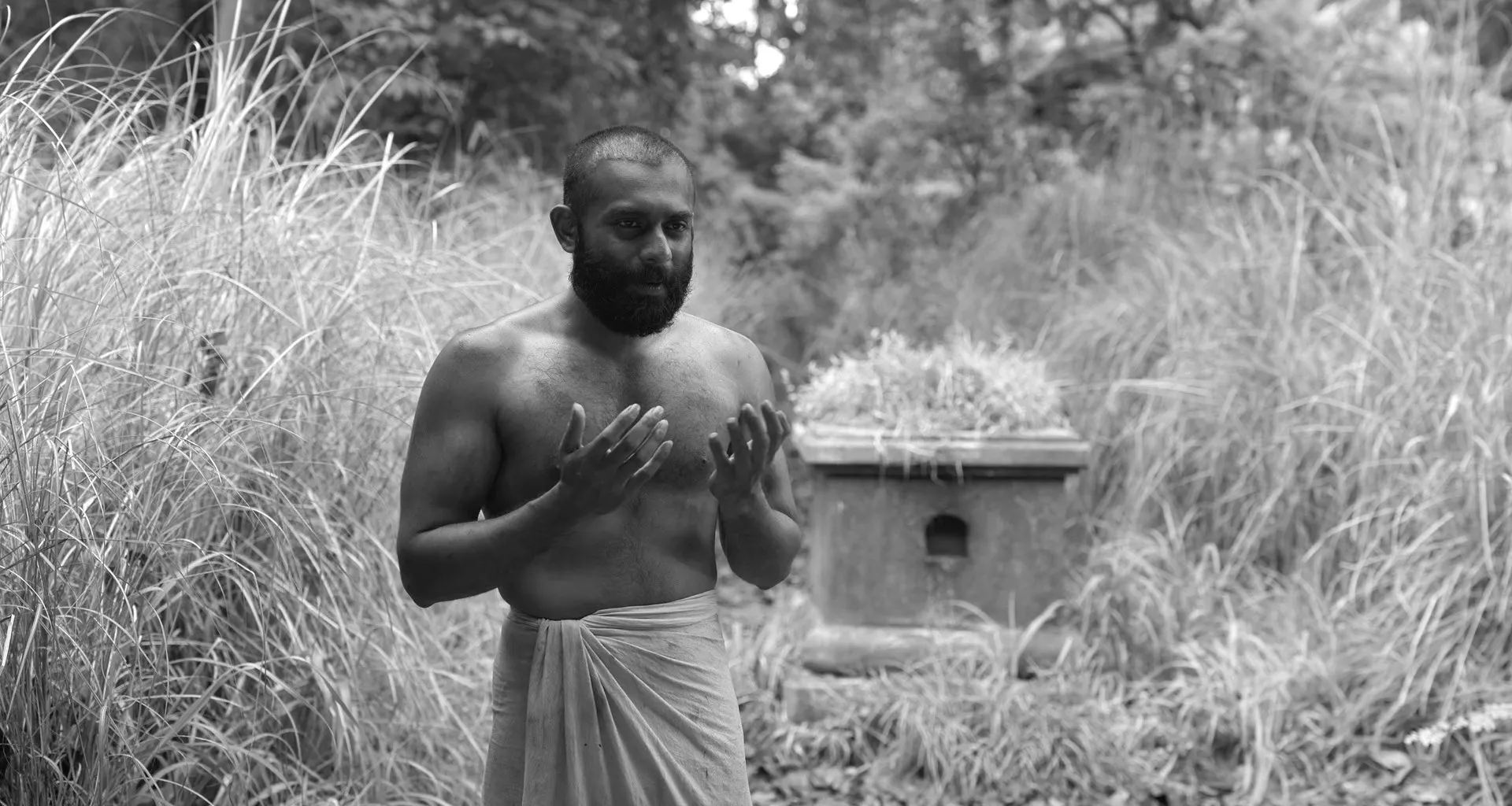 Cast: Arjun Ashokan as Thevan, Mammootty as Kodumon Potti, Siddharth Bharathan as The Cook, Amalda Liz as Yakshi, Manikanda Rajan as Koran